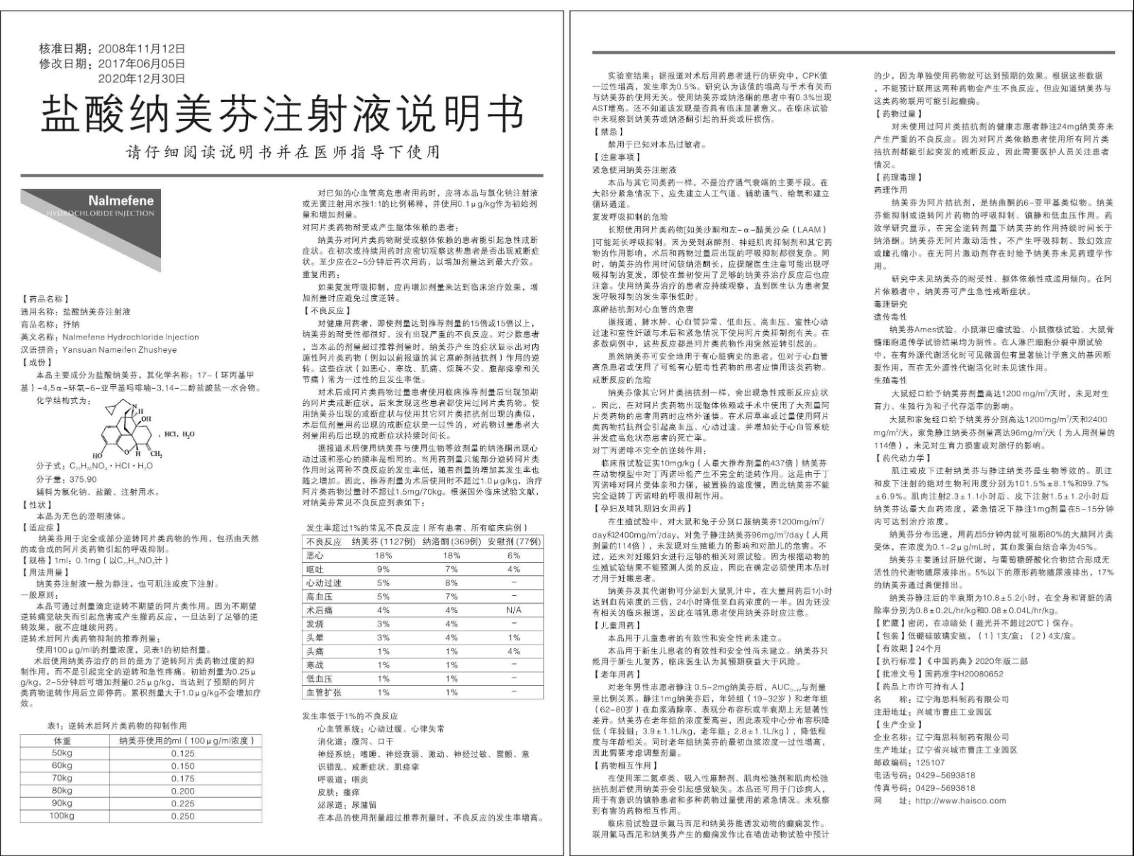 【通用名】鹽酸納美芬注射液